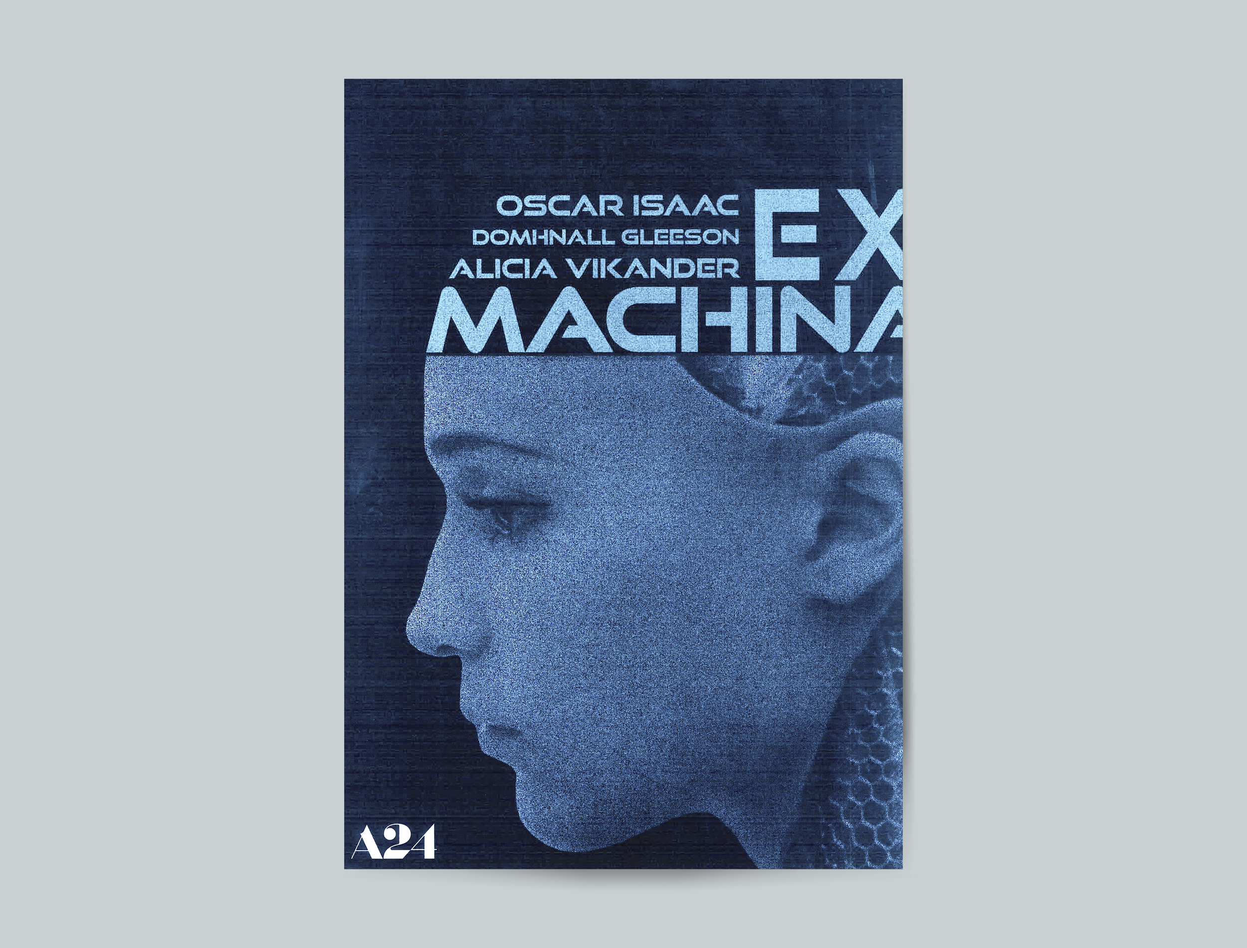 En skoluppgift där jag skulle skapa tre poster för A24-filmerna Ex Machina, Aftersun och The Witch. Postert för Ex Machina ska symbolisera filmens om vad det är som gör oss till den vi är. Jag ville också att postert skulle ge en känsla av ensamhet, då det också är ett centralt koncept i filmen.